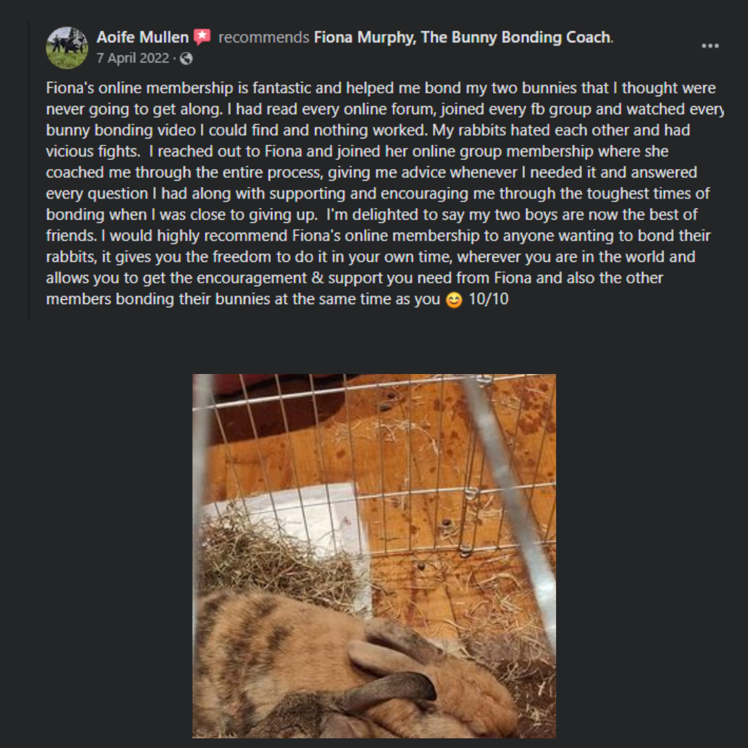 Join our exclusive monthly membership for bunny owners facing bonding challenges! I will be with you every step of the way, cheering you on, encouraging, supporting and advising, so let's get those bunnies loved up together - quicker & easier!